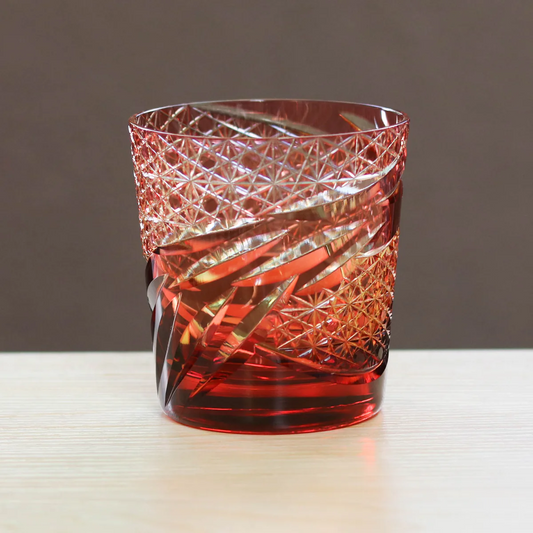 Old Fashioned Glass-Otaru Kiriko/Miabi/Amber Red-Gold(Kinaka)/Fukagawa Glasss Craft