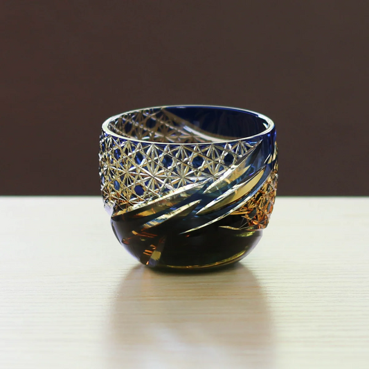 Old Fashioned Glass-Otaru Kiriko/Miyabi/ Amber Blue(Ruri)/Fukagawa Glass Craft