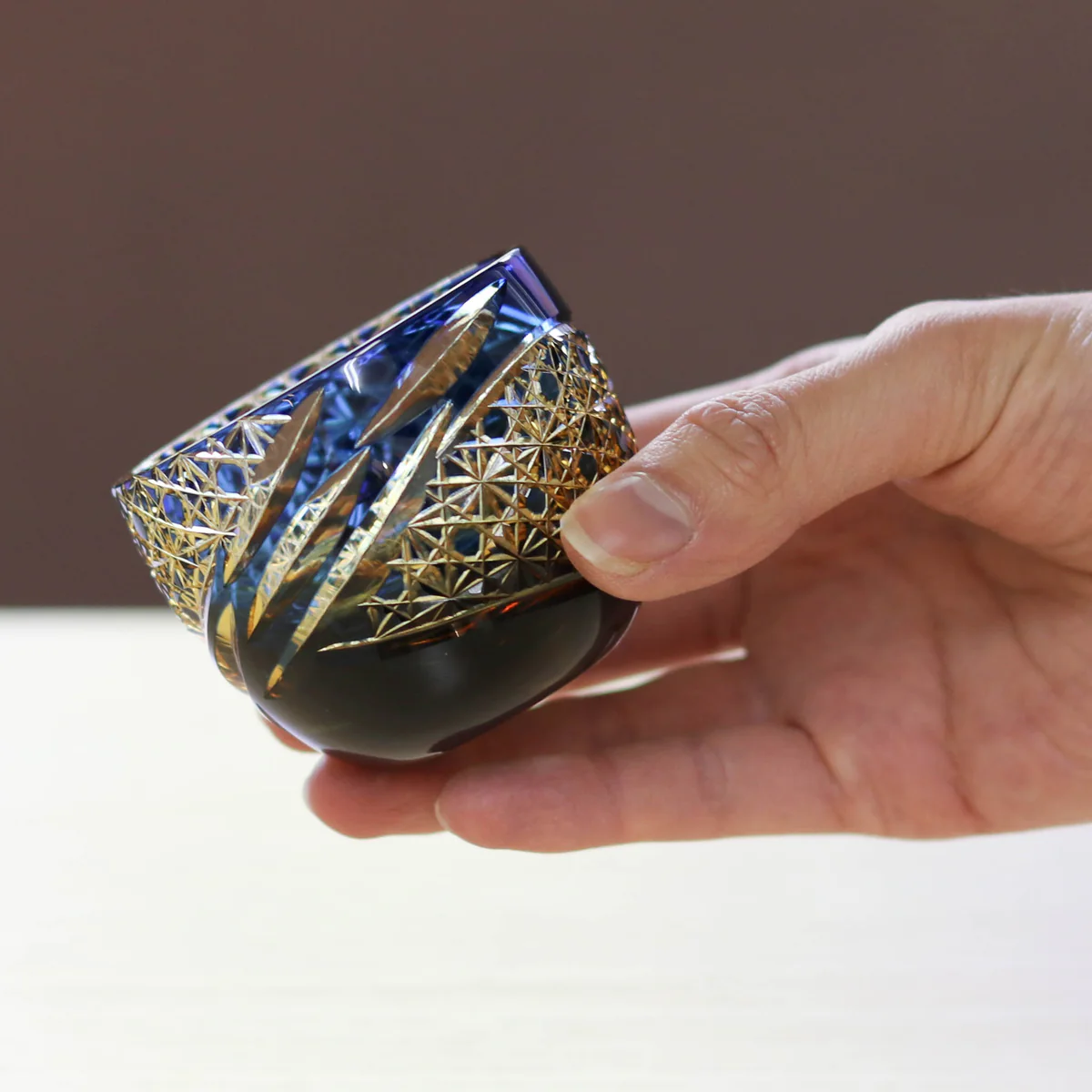 Guinomi Glass – Otaru Kiriko | Miyabi | Amber Blue (Ruri) | Fukagawa Glass Craft