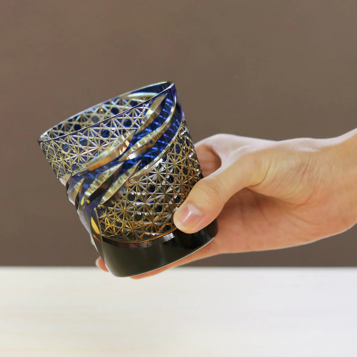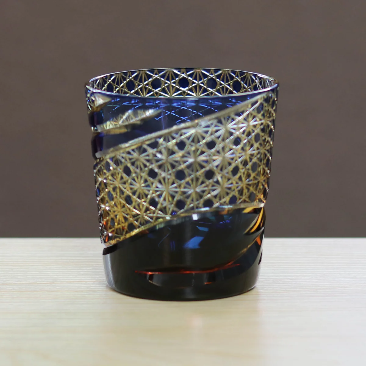 Old Fashioned Glass-Otaru Kiriko/Miyabi/ Amber Blue(Ruri)/Fukagawa Glass Craft
